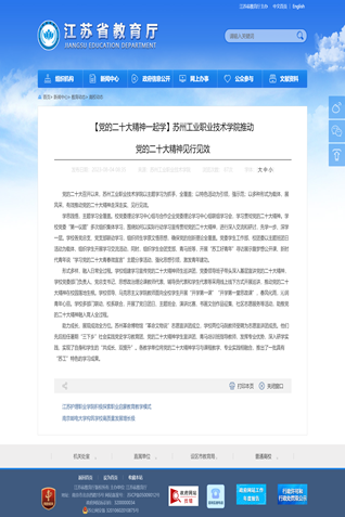 黨的二十大召開以來,蘇州工業職業技術學院以主題學習為抓手,全覆蓋;以特色活動為引領,強示范;以多種形式為載體,展風采,有效推動黨的二十大精神走深走實、見行見效。