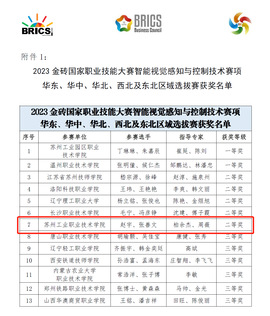 8月29日,2023金磚國家職業技能大賽(金磚國家未來技能挑戰賽)之智能視覺感知與控制賽項華東、華中、華北、西北及東北區域選拔賽在蘇州工業園區舉行。由機電系柏余杰、周薇老師指導的22級學生張善文、趙宇同學,利用暑假刻苦訓練、積極備賽,獲得了二等獎的好成績。