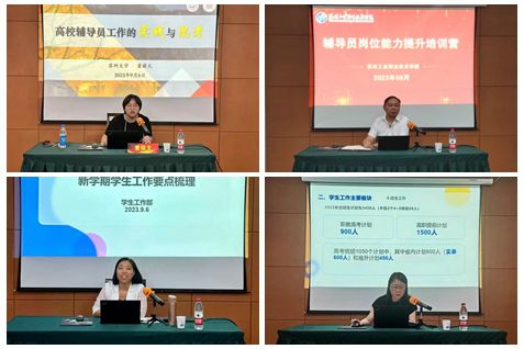 培訓會上,江蘇省2023年 “最美高校輔導員”蘇州大學政治與公共管理學院輔導員董筱文老師作《高校輔導員工作的實踐與思考》專題講座。隨后,學生工作部副部長田立苗、徐麗君分別就思政教育、日常管理、學生社區、資助育人、心理健康、招生工作、就業工作、輔導員隊伍建設等八個板塊的具體工作進行了系統梳理和講解。最后,童鈺祥部長對輔導員工作提出要求,他指出,輔導員要講政治、懂政治,愛學生、知學生,明事理、會說理,肯學習、會學習,有能力、具魅力,做學生的榜樣,用輔導員自身的優秀成就學生明天的優秀,用輔導員今天的辛苦換取學生明天的幸福。