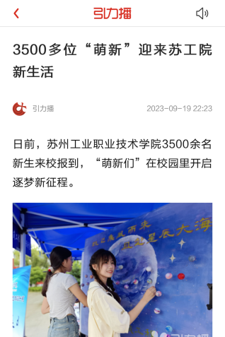 日前,蘇州工業職業技術學院3500余名新生來校報到,“萌新們”在校園里開啟逐夢新征程。