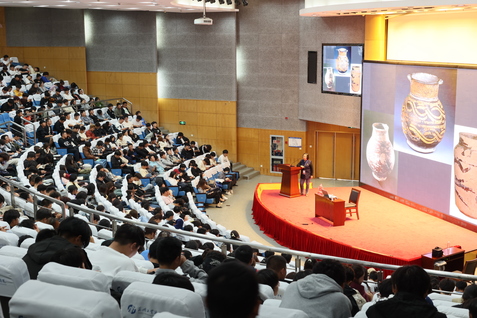 王年沿著歷史發(fā)展的脈絡(luò),深入解讀各個(gè)歷史時(shí)期的吳地文化,探究“吳文化”歷史起源,感悟中華文明的源遠(yuǎn)流長(zhǎng)、博大精深。她結(jié)合館藏精品文物和歷史故事,以通俗易懂的語(yǔ)言為廣大師生生動(dòng)展現(xiàn)吳地文明的演變軌跡。現(xiàn)場(chǎng)師生跟隨她的講解,一同暢游在吳地文化歷史的長(zhǎng)河中,受益匪淺。