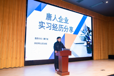 活動第一階段由王宛平主持,她介紹了目前在唐人企業(yè)實(shí)習(xí)的21級學(xué)生徐洪廣、施宇軒、潘子成的情況。三位實(shí)習(xí)生也分享了各自實(shí)習(xí)經(jīng)歷和收獲、在校期間專業(yè)課的準(zhǔn)備和簡歷制作、面試等方面的技巧,并鼓勵學(xué)弟學(xué)妹及早做好學(xué)業(yè)規(guī)劃和職業(yè)生涯規(guī)劃,明確努力方向,用腳踏實(shí)地的行動和吃苦耐勞的精神,去實(shí)現(xiàn)大學(xué)目標(biāo)。