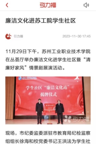 11月29日下午,蘇州工業(yè)職業(yè)技術(shù)學(xué)院在叢薈廳舉辦廉潔文化進(jìn)學(xué)生社區(qū)暨“清廉好家風(fēng)”情景劇展演活動。