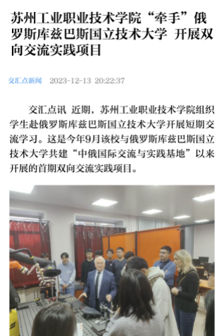 交匯點訊 近期,蘇州工業職業技術學院組織學生赴俄羅斯庫茲巴斯國立技術大學開展短期交流學習。這是今年9月該校與俄羅斯庫茲巴斯國立技術大學共建“中俄國際交流與實踐基地”以來開展的首期雙向交流實踐項目。