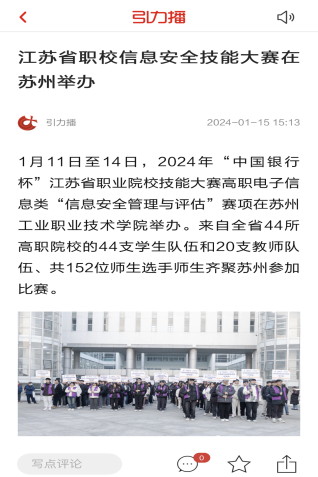 1月11日至14日,2024年“中國銀行杯”江蘇省職業(yè)院校技能大賽高職電子信息類“信息安全管理與評估”賽項在蘇州工業(yè)職業(yè)技術學院舉辦。來自全省44所高職院校的44支學生隊伍和20支教師隊伍、共152位師生選手師生齊聚蘇州參加比賽。