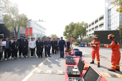 揭牌儀式中,王洪法書記代表學校致辭,向蒞臨本次活動的蘇州市消防救援支隊的領導和教導員、指戰員們表示最熱烈的歡迎,并詳細介紹了學校發展歷程。他強調,此次揭牌儀式翻開了校地人才共育的新篇章,真誠期待以此次合作為起點,在全方位各領域都能取得豐碩成果,對參加活動的同學們提出三點希望:一是要做崇德向善、引領風尚的新時代有德青年;二是要做務實勤奮、銳意進取的新時代有才青年;三是要做志存高遠、開拓創新的新時代有為青年。