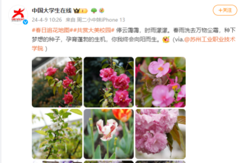 (中國大學(xué)生在線微博 24.4.9)