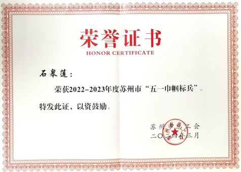 為大力弘揚勞模精神、工匠精神、勞動精神,進一步增強和激發女職工的榮譽感和責任感,切實發揮先進典型的示范引領作用,引領全市女職工為蘇州高質量發展貢獻巾幗力量,蘇州市總工會近期開展了2022—2023年度蘇州市五一巾幗標兵崗、五一巾幗標兵推薦評選活動。