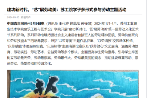 中國(guó)青年網(wǎng)蘇州5月9日電(通訊員 王化婷 錢蕊蕊 黃強(qiáng)強(qiáng))2024年1月-4月,蘇州工業(yè)職業(yè)技術(shù)學(xué)院建筑工程與藝術(shù)設(shè)計(jì)學(xué)院開展“建功新時(shí)代,‘藝’展勞動(dòng)美”第一屆勞動(dòng)文化藝術(shù)節(jié)系列活動(dòng)。系列活動(dòng)準(zhǔn)確把握社會(huì)主義建設(shè)者和接班人的勞動(dòng)精神面貌、勞動(dòng)價(jià)值取向和勞動(dòng)技能水平的培養(yǎng)要求,包括“以勞育美”主題作品征集、“以勞增技”校園綠化種植、“以勞賦能”志愿服務(wù)實(shí)踐、“以勞樹德”主題演講比賽以及“以勞健心”文藝展演,涵蓋勞動(dòng)教育、勞動(dòng)實(shí)踐、勞動(dòng)藝術(shù)、公益勞動(dòng)等多個(gè)板塊,全面提高學(xué)生勞動(dòng)素養(yǎng),引導(dǎo)學(xué)生牢固樹立勞動(dòng)最光榮、勞動(dòng)最崇高、勞動(dòng)最偉大、勞動(dòng)最美麗的觀念,推動(dòng)建設(shè)尊重勞動(dòng)、崇尚勞動(dòng)、熱愛勞動(dòng)的校園文化。