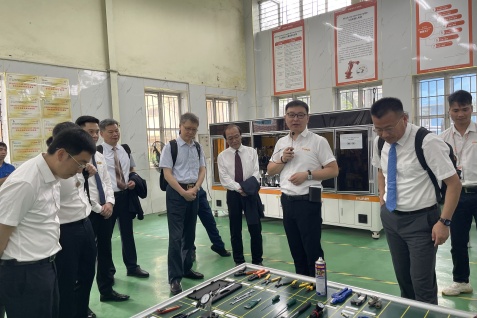 儀式前,我校出訪團參觀了越南富納智能制造實訓中心以及河內工業職業學院實驗實訓室,觀摩了富納正在開展的校企合作培訓項目,并與培訓班越南學生進行親切交流。