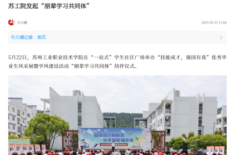 5月22日,蘇州工業(yè)職業(yè)技術(shù)學(xué)院在“一站式”學(xué)生社區(qū)廣場舉辦“技能成才,強國有我”優(yōu)秀畢業(yè)生風(fēng)采展暨學(xué)風(fēng)建設(shè)活動“朋輩學(xué)習(xí)共同體”結(jié)伴儀式。