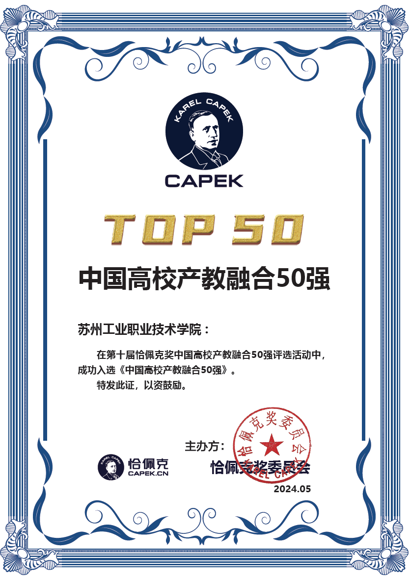 5月29日至31日,第十四屆中國國際機(jī)器人高峰論壇暨第十屆恰佩克獎(jiǎng)?lì)C獎(jiǎng)儀式在安徽蕪湖舉行,活動(dòng)以“遇見恰佩克·預(yù)見新未來”為主題,由中國機(jī)電一體化技術(shù)應(yīng)用協(xié)會、安徽省工業(yè)和信息化廳、蕪湖市人民政府共同主辦。我校成功獲評恰佩克“中國高校產(chǎn)教融合50強(qiáng)”。這是我校第二次獲評該獎(jiǎng)項(xiàng)。