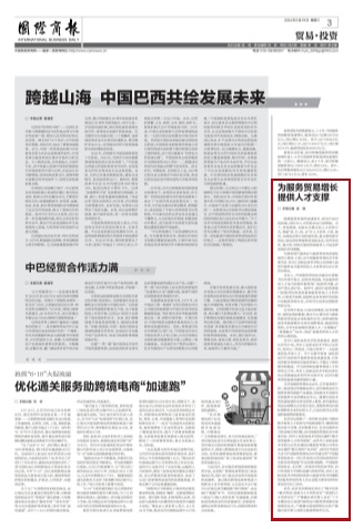 隨著服務(wù)貿(mào)易的快速增長,相關(guān)行業(yè)對高質(zhì)量、國際化人才的需求也日益增強(qiáng)。當(dāng)下,持續(xù)探索、創(chuàng)新辦學(xué)模式和人才培養(yǎng)方式,構(gòu)建“政、行、校、企”在人才培養(yǎng)、引進(jìn)、使用、合理流動等方面的新機(jī)制,重點(diǎn)聚焦數(shù)字貿(mào)易、綠色貿(mào)易等服務(wù)貿(mào)易新業(yè)態(tài),培養(yǎng)多層次、復(fù)合型、國際化服務(wù)貿(mào)易新質(zhì)人才是業(yè)界面臨的共同課題。