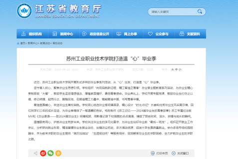 近日,蘇州工業職業技術學院開展形式多樣的畢業季系列活動,從“心”出發,打造溫“心”畢業季。