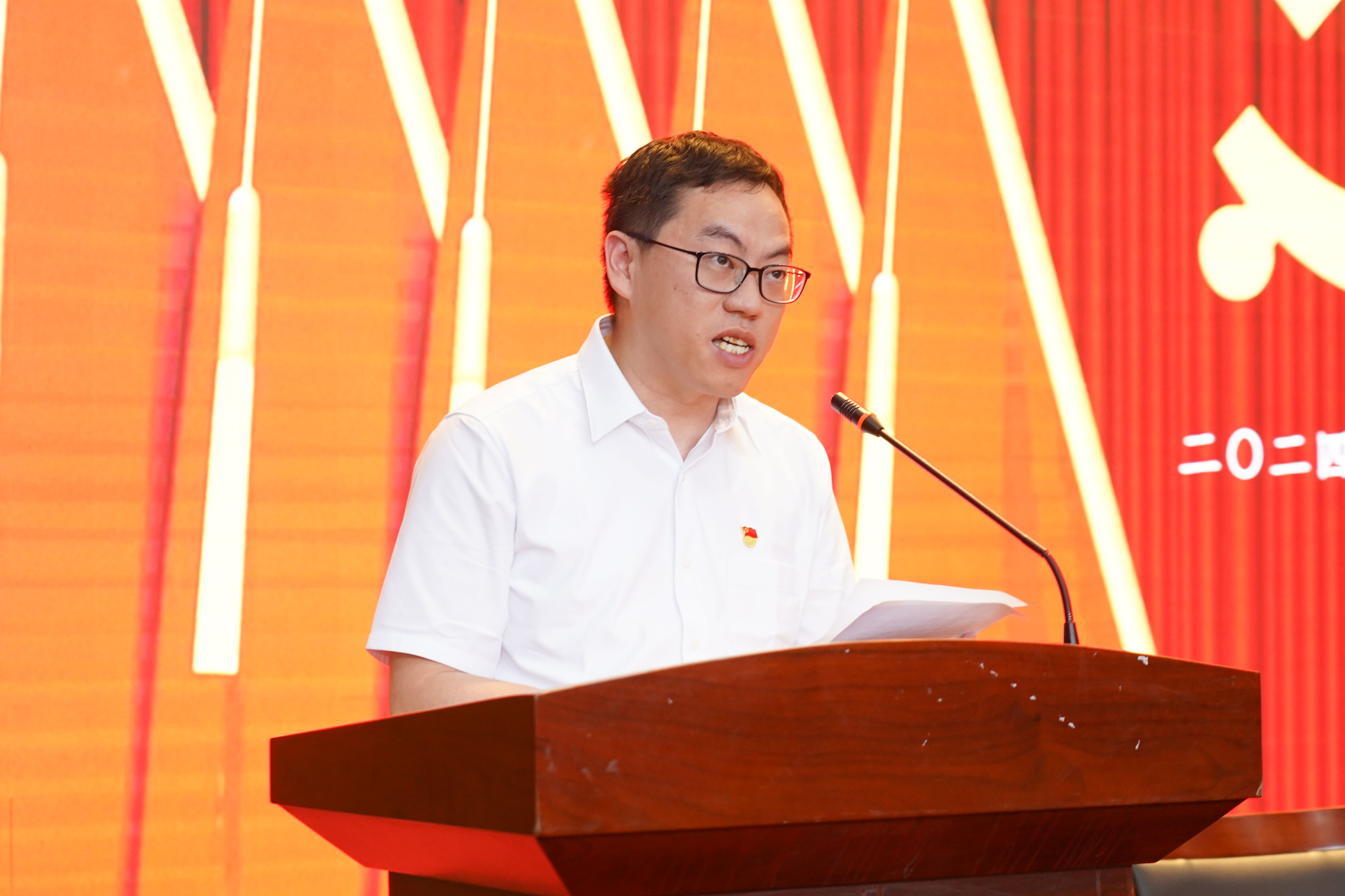 學校黨委書記王洪法作大會講話,他首先代表學校黨委向立項建設和受到表彰的組織和個人表示熱烈的祝賀,向全校各級黨組織和全體黨員致以節日的誠摯問候。他指出,近年來學校黨委團結帶領全體黨員干部,堅持聚焦發展抓黨建,強化黨建促發展,在加強內涵建設,攻堅“雙高”驗收,推進產教融合,服務地方發展等方面,都取得了新成績新業績。同時他向全體黨員提出了三點希望:一是在繼承發揚中感悟思想偉力,堅定理想信念;二是在干事創業中銳意進取,踐行責任擔當;三是在聚力攻堅中展現團結,發揮堡壘作用。