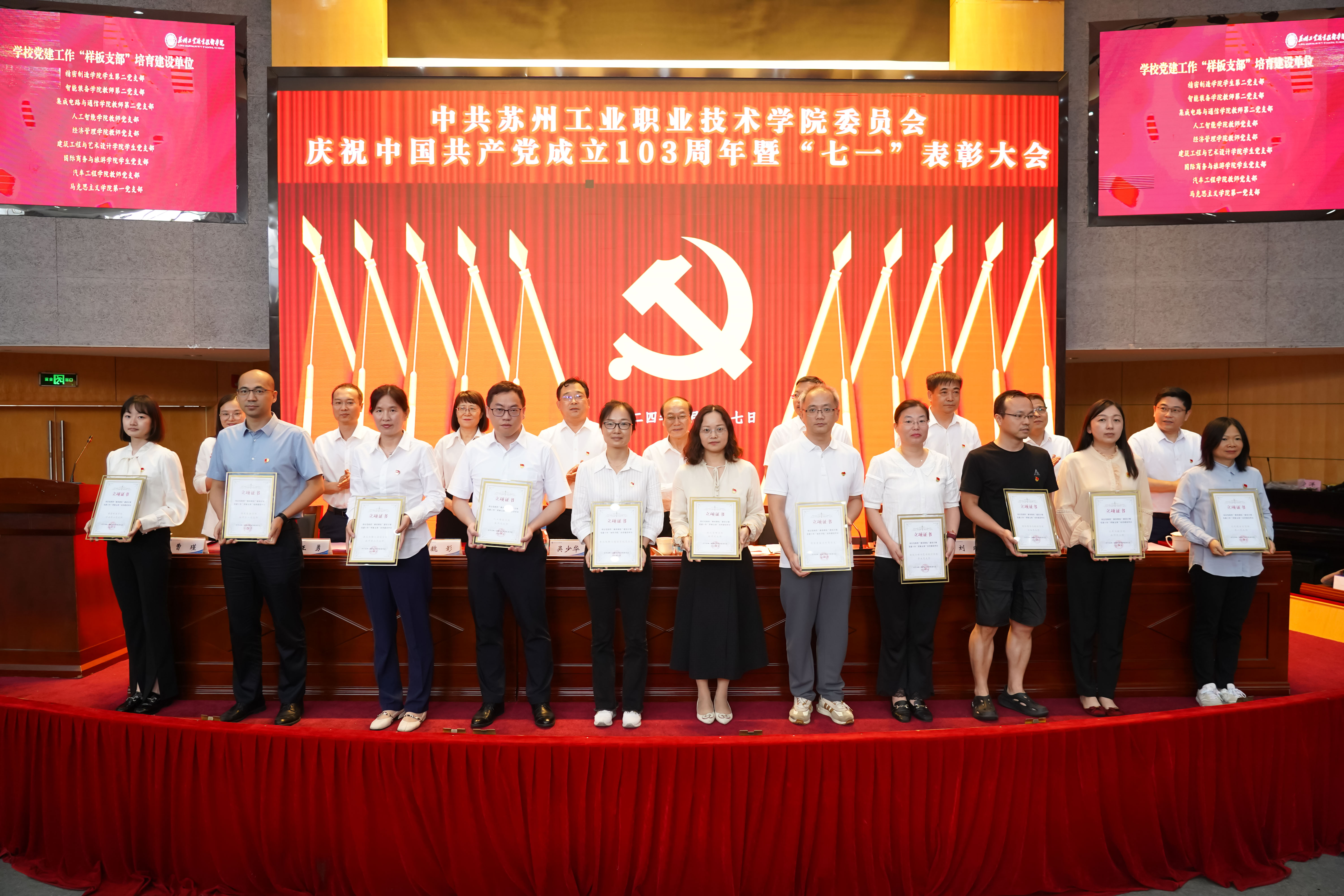 會上,黨委副書記、副校長吳少華宣讀了江蘇省第二批黨建工作樣板支部遴選結果、學校2024年基層黨組織“強基創優”建設遴選結果、學校“兩優一先”表彰決定。主席臺領導為立項基層黨組織頒發立項證書,為先進基層黨組織和優秀個人頒發榮譽證書。人工智能學院黨總支李文俊同志、精密制造學院黨總支季業益同志、機關黨總支張琰同志分別代表先進基層黨組織和優秀個人作了大會發言。