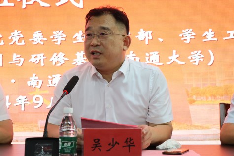 南通大學黨委常委副校長、博士生導師吉明明,南通大學學生工作部部長、省名師工作室主持人張雪松,我校黨委副書記、副校長吳少華,學生工作部部長童鈺祥等出席了開班儀式。吉明明作開班致辭,對我校到南通大學開展輔導員培訓表示熱烈歡迎。