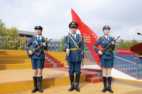 開學典禮在雄壯的國歌聲中拉開序幕,五星紅旗冉冉升起,全體師生面向國旗行注目禮,齊唱國歌,慶祝中華人民共和國成立75周年。