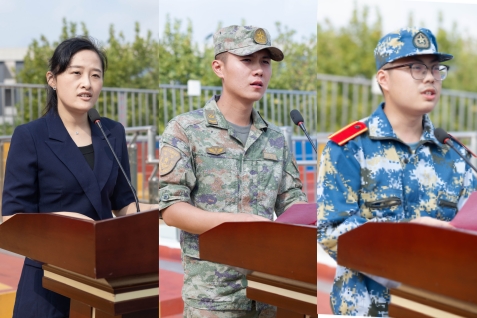 中國人民解放軍31604部隊齊英杰教官代表本次軍訓全體教官發言,他以身為范,向同學們明確了軍訓要求,希望全體參訓人員不畏艱難、齊心協力,認真對待每一天的訓練安排,以實際行動答好大學里的第一份考卷,以嶄新面貌迎接下一階段的學習生活。