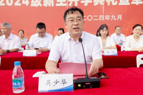 秋光為序,筑夢啟航。9月30日上午,我校舉行2024級新生開學典禮暨軍訓動員大會。校領導馬延文、吳少華、劉曉、魏影、蘇華,校軍訓團團長、中國人民解放軍31604部隊教導員湯玨,各職能部門負責人,各教學單位黨政領導、軍訓教官代表、新生班級輔導員、班主任和全體2024級新生齊聚田徑場,共同見證這一青春夢想的啟程。典禮由校黨委副書記、副院長吳少華主持。