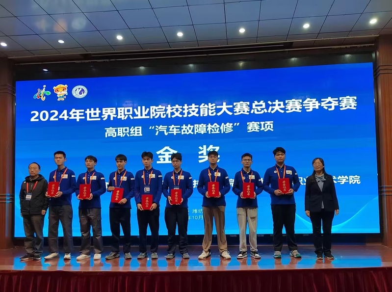 10月28日,2024年世界職業院校技能大賽總決賽爭奪賽高職組交通運輸賽道汽車故障檢修組(賽項)在山東交通職業學院落下帷幕。由我校汽車工程學院繆偉和馬俊老師指導,陳康、潘鈺山、謝武軒三位同學組成的團隊,在激烈的競爭中脫穎而出,以全國第三名的卓越成績榮獲金獎,為學校在該賽項中創造了歷史性的突破。