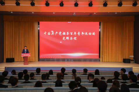 開班儀式結束后,全體學員集體觀看學習了“青年大學習”視頻《我眼中的紅色寶藏》。校團委兼職副書記蔣澄燦帶來“中國共產黨領導百年青年運動的光輝歷程”主題團課暨信仰公開課。