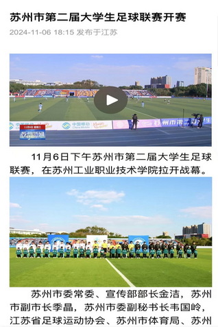 11月6日下午蘇州市第二屆大學生足球聯(lián)賽,在蘇州工業(yè)職業(yè)技術(shù)學院拉開戰(zhàn)幕。