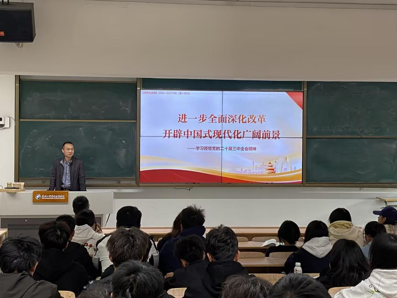 為深入學(xué)習(xí)貫徹習(xí)近平新時代中國特色社會主義思想和黨的二十屆三中全會精神,進(jìn)一步落實(shí)校領(lǐng)導(dǎo)帶頭講授思政課的相關(guān)要求,近日,全體校領(lǐng)導(dǎo)以“深入領(lǐng)會黨的二十屆三中全會精神”為主題,走進(jìn)課堂,為學(xué)生們講授思政課。
