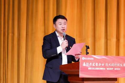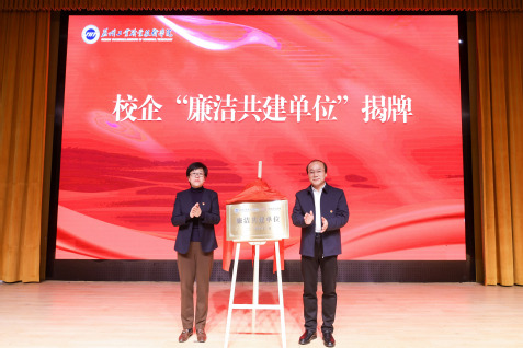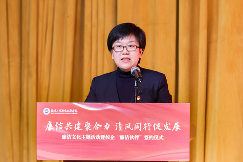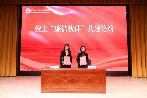 活動現(xiàn)場,蘇州書香酒店集團(tuán)黨委書記、董事長吳妤為校企“廉潔伙伴”共建儀式致辭。她表示,雙方將探索建立黨建引領(lǐng)、資源共享、協(xié)同育人的工作機(jī)制,加強(qiáng)校企黨風(fēng)廉政建設(shè)領(lǐng)域的合作與交流,深化產(chǎn)教融合、校企合作,促進(jìn)雙方事業(yè)的蓬勃發(fā)展。蘇州書香酒店集團(tuán)黨委委員、紀(jì)委書記張素君和學(xué)校黨委委員、紀(jì)委書記魏影共同簽訂了校企“廉潔伙伴”共建協(xié)議。蘇州書香酒店集團(tuán)黨委委員、副總經(jīng)理崔業(yè)賓和學(xué)校黨委副書記、院長馬延文為校企共建“實(shí)習(xí)實(shí)踐基地”“大學(xué)生志愿服務(wù)基地”揭牌。蘇州書香酒店集團(tuán)黨委書記、董事長吳妤和學(xué)校黨委書記王洪法為校企“廉潔共建單位”揭牌。活動在廉潔社團(tuán)同學(xué)們帶來的廉潔情景劇《古今對話說“清廉”》中圓滿落幕。
