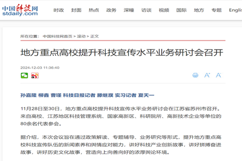 11月28日至30日,地方重點高校提升科技宣傳水平業務研討會在江蘇省蘇州市召開。來自高校、江蘇地區科技管理系統、國家高新區、科研院所、高新技術企業等單位的80余名代表參會。