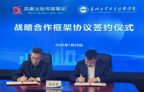 1月20日,我校與鳳凰出版?zhèn)髅郊瘓F(tuán)戰(zhàn)略合作框架協(xié)議簽約儀式在天樞樓舉行。學(xué)校黨委書記王洪法,黨委副書記、院長(zhǎng)馬延文,鳳凰出版?zhèn)髅郊瘓F(tuán)黨委副書記、總經(jīng)理李貞強(qiáng),鳳凰出版?zhèn)髅郊瘓F(tuán)副總經(jīng)理、現(xiàn)代快報(bào)社社長(zhǎng)屠法,鳳凰傳媒副總經(jīng)理、鳳凰新華書店集團(tuán)董事長(zhǎng)秦俊俊等出席了簽約儀式。會(huì)議由馬延文主持,鳳凰出版?zhèn)髅郊瘓F(tuán)、鳳凰職業(yè)教育圖書有限公司以及我校相關(guān)部門負(fù)責(zé)人參加了本次活動(dòng)。