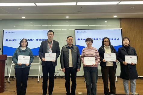 隨后,活動現場舉行了“青藍工程”師徒結對儀式,五位新入職輔導員和五位指導老師鄭重簽訂師徒結對協議。學工部部長童鈺祥為五位指導老師頒發聘書,希望師徒明確職責,以老帶新,傳承經驗,提升能力。學工部副部長徐麗君和田立苗先后就學生就業和常規管理布置相關工作,保障學生管理工作有條不紊推進。