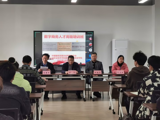3月19日下午,由中國服務貿易協會專家委員會與我校國際商務與旅游學院共同舉辦的數字商務人才高級培訓班開班。我校副校長蘇華、教務處處長何福男、國際商務與旅游學院院長葉文紅等參加開班儀式。中國服務貿易協會副秘書長、工會主席李俊在線參加開班儀式并致辭。開班儀式由國際商務與旅游學院黨總支書記桂德懷主持?;刂v師、學員60余人參加了開班儀式。