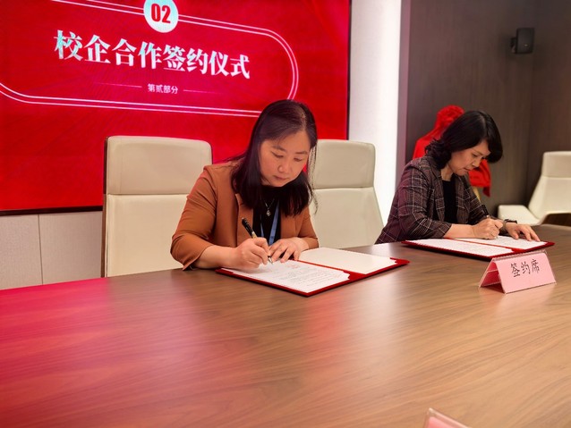 會上,葉文紅與錢恩妮共同簽訂了校企合作協議書,耿欣與錢恩妮為校企共建人才培養實踐基地揭牌。