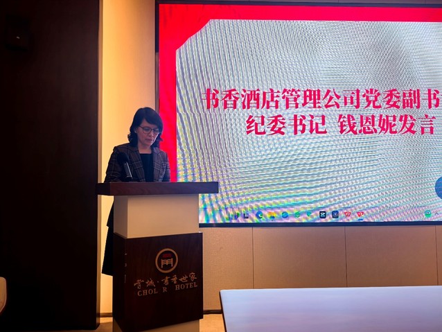 首先,公司黨委副書記錢恩妮致歡迎辭。她指出,書香酒店始終秉持服務社會,培養人才的使命。本次合作將重點發揮資源共享優勢,共育專業人才聯合開發課程體系,共創發展價值。她希望同學們以訂單班為新起點,錘煉專業技能與職業精神,成為腳踏實地的行動者;以實踐為導向,激發創新思維與問題解決能力,成為持續進化的開拓者;以團隊協作為準則,實現個人成長與企業發展步調一致,成為行業未來的棟梁。