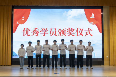 儀式在莊嚴的國歌與團歌聲中拉開序幕。學院團委學生副書記何偉杰通過詳實的數據和鮮活的案例進行總結,全面回顧了訓練營開展情況,系統梳理了學員們在理論學習、實踐鍛煉、能力提升等方面的成長與收獲,生動展現了訓練營取得的豐碩成果。隨后,羅瑪、馬曉云、張韻雅分別為24名“優秀學員”頒發榮譽證書。