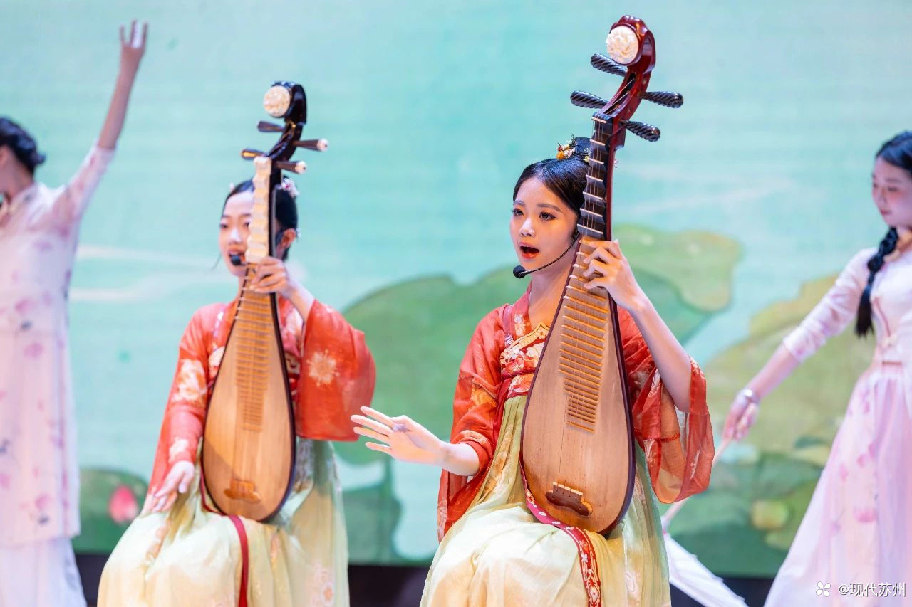 5月26日,節目走進蘇州城市學院進行專場展演。三弦輕撥,舞步翩躚。節目將蘇州評彈的婉轉唱腔與古典舞蹈巧妙融合,油紙傘開合間盡顯江南詩意。傳統與現代在此刻交織,共繪一幅靈動的“水鄉畫卷”,為現場觀眾帶來一場視聽盛宴。現場觀眾表示,這是穿越時光的蘇州,亦是青春正好的蘇州——曲未終,意無窮。