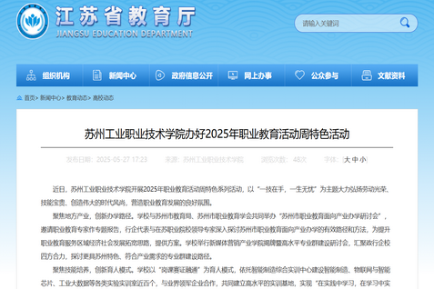 近日,蘇州工業職業技術學院開展2025年職業教育活動周特色系列活動,以“一技在手,一生無憂”為主題大力弘揚勞動光榮、技能寶貴、創造偉大的時代風尚,營造職業教育發展的良好氛圍。