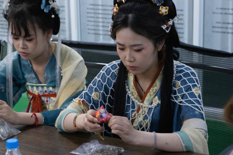 身著漢服的蘇工學(xué)子化身文化使者,通過屏幕將蘇州端午的習(xí)俗娓娓道來。金雞湖上龍舟競渡的水韻靈動、葑門橫街粽葉飄香的生活氣息、非遺匠人制作艾草香囊的精湛技藝,配合《蘇州好風(fēng)光》評彈演繹,構(gòu)建出立體鮮活的江南端午圖景。新疆學(xué)子則以舞蹈《新疆人》回應(yīng),熱情奔放的民族舞蹈與手鼓演奏,將大漠綠洲的端午風(fēng)情展現(xiàn)得淋漓盡致。