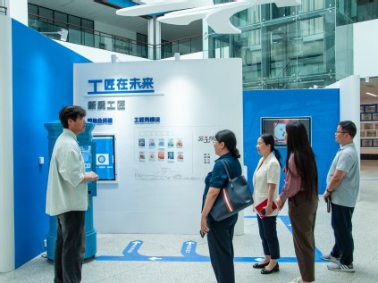 宣講結束后,周瑾攜學院副院長殷銘、團委書記王琪等陪同周彩虹實地參觀了天工樓。在匠心園內,精密制造學院青年講師團介紹了學校發展歷程和優秀學生事跡。隨后一行人員繼續參觀多軸加工、精密制造智能產線、精密測量等實訓場所。