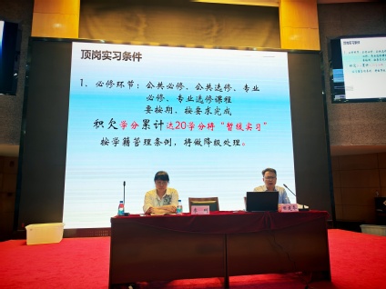 會上,李明圍繞大三實習關(guān)鍵工作,梳理任務(wù)流程與要求,助力學(xué)生認清社會現(xiàn)狀,找準個人優(yōu)勢,轉(zhuǎn)變就業(yè)觀念,清晰規(guī)劃實習節(jié)奏,增強實習就業(yè)意識。田建冬圍繞頂崗實習、畢業(yè)設(shè)計、畢業(yè)條件三大核心板塊展開講解,他強調(diào)了實習時長并介紹實習指導(dǎo)及系統(tǒng)操作流程,解讀畢業(yè)設(shè)計規(guī)范與成績評定標準,以人才培養(yǎng)方案為依據(jù),強調(diào)畢業(yè)條件、畢業(yè)資格審核要求,進行實習工作預(yù)熱,明確實習啟動的重要意義。張祥聚焦實習安全,從租房、工作、交通、心理健康等多維度,強調(diào)安全防范要點,筑牢學(xué)生安全意識防線。最后,王宛平總結(jié)大會要點,再次叮囑學(xué)生重視自身安全、保持師生聯(lián)系,依規(guī)推進實習。
