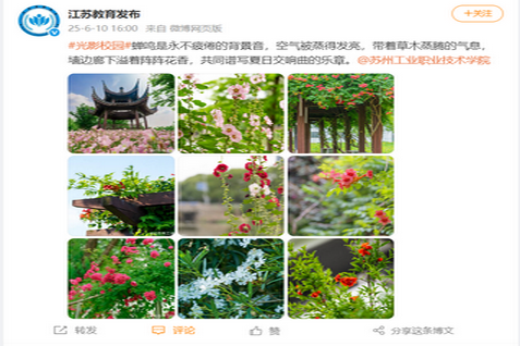 #光影校園#蟬鳴是永不疲倦的背景音,空氣被蒸得發(fā)亮,帶著草木蒸騰的氣息,墻邊廊下溢著陣陣花香,共同譜寫夏日交響曲的樂(lè)章。@蘇州工業(yè)職業(yè)技術(shù)學(xué)院