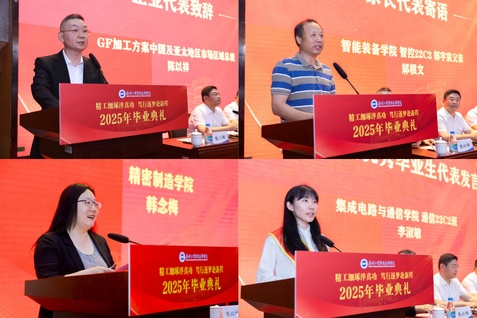 江蘇省“優秀學生干部”李淑敏作為畢業生代表分享了自己的成長故事,感謝母校在自己身上烙下“精工篤行”印記,賦予“向陽而生”的底色,使她擁有了砥礪前行的堅韌與勇氣。江蘇省科技副總、精密制造學院工業工程技術專業教研室主任韓念梅博士,鼓勵畢業生永遠不要輕易否定自己,激勵大家要爭做“聰明的奮斗者”。軍人出身、從警二十載的社區民警,智能裝備學院畢業生邾宇宸的家長邾根文,從守住善良正直的底色、把挫折當作成長的養分、讓個人價值與社會共振三個方面,鼓勵同學們堅定理想信念、厚植家國情懷。用人單位代表,GF加工方案中國及亞太地區市場區域總裁陳以祥,圍繞GF與學校在共建全國標桿實訓基地、共育“金師工匠”、共解產業難題等方面,講述探索產教融合新路徑新成果,引導畢業生意識到自己正是那個扛起工業文明“脊梁”的人。
