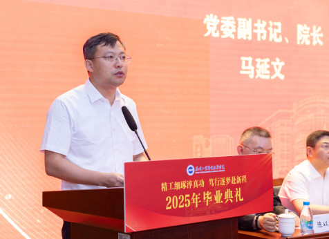 黨委副書記、院長馬延文為全體2025屆畢業生送上衷心祝賀與誠摯祝福。他期望畢業生們能扎根產業一線,以“匠者之心”回應時代之需;擁抱變革浪潮,以“數字之翼”搶占未來先機;融通職普邊界,以“跨界之智”開拓人生格局;胸懷“國之大者”,以“青年之志”服務戰略所需,以匠者之心、破壁之勇,在平凡中鑄就卓越,在變革中定義未來。