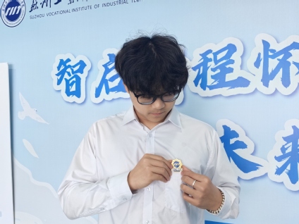 在莊重而富有儀式感的徽章授予環節,院長石皋蓮、黨總支書記張大圣鄭重地將校友徽章授予畢業生代表。畢業生們將徽章佩戴于左胸前,一枚徽章,從此系起一條無形而牢固的情感紐帶。這枚精心設計的徽章以象征學院精神的藍色為主調,點綴寓意光明前程的金色。這枚徽章,是智能裝備學院學子的身份標識,是學子對母校歸屬感的具象凝結,更是“向陽而生,精工篤行”校園文化精髓的傳遞載體。