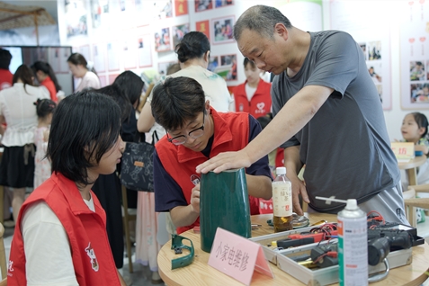在“文化科技·智慧生活新體驗”板塊中,傳統文化體驗工坊與現代科技互動項目成為亮點。青年志愿者協會與麟芷書畫篆刻社聯合設立書法臨摹、漆扇繪制、非遺竹編等體驗工坊,居民通過親手制作工藝品,沉浸式感受中華文化魅力。學院提供的3D打印技術體驗等科技項目,通過趣味實踐激發青少年的科學探索熱情,培養創新思維與動手能力。此外,志愿者結合暑期安全開展健康科普講座,現場演示急救技能、講解防暑養生知識,提升居民健康管理與應急處置能力,為構建安全智慧社區注入新動能。由校工會副主席陳建輝帶隊的惠民服務專區也廣受好評,通過家電免費維修服務,將“我為群眾辦實事”要求轉化為實際成果。