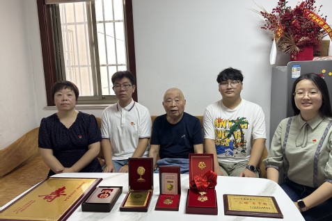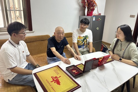 7月29日,精密制造學院黨員師生代表王琪、呂春蘭、姜旻昊、孫瑞江等前往鹽城市建湖縣走訪抗戰老兵呂立國同志。