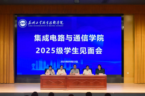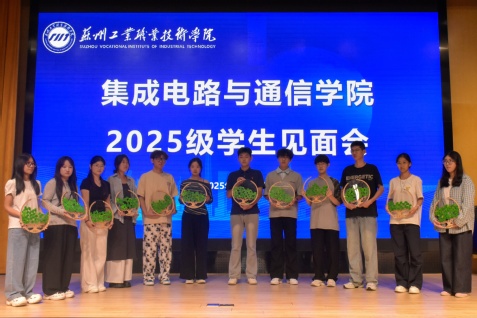 “2025年世界職業院校技能大賽電子電器與集成電路賽道”銀獎獲得者、來自25電子(Z)班的王吉龍同學,作為學生代表發言。他結合從專科步入本科的經歷,分享了在專科階段通過積極參賽實現自我提升的成長感悟,并為新生們提供了寶貴建議。站在新起點,他鼓勵大家盡早樹立目標、做好學業規劃,以不懈奮斗迎接未來的挑戰。王棟院長以熱情洋溢的致辭歡迎新同學的加入,并圍繞學院發展歷程、學科特色、人才培養目標等方面進行了全面介紹。他鼓勵同學們珍惜大學時光,勇于探索、勤于實踐,在集成電路與通信的廣闊天地中書寫青春華章。蘇州市勞動模范、校關工委委員殷慶縱教授為新生送上深情寄語。他結合個人經歷與公益實踐,從“立德、立志、立學”三個方面勉勵同學們樹立遠大理想,錘煉專業本領,傳承勞動精神,成為有擔當、有情懷的時代新人。