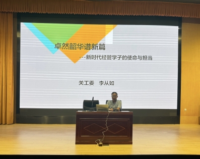 課堂上,李從如老師先是通過回顧閱兵式中展現的國家實力與民族精神,帶領新生感受時代脈搏,激發大家的愛國情懷與民族自豪感。隨后,李老師圍繞“時代之問”展開論述,結合當前經濟社會發展形勢與青年成長背景,引導新生思考“如何在時代浪潮中找準自身定位”等核心問題,促使新生跳出“小我”視角,主動將個人發展融入國家需求。李老師強調經管學子的使命不僅是學好專業知識,更要傳承“經世濟民”的精神。最后,他給新生提出了具體建議:既要注重專業知識的深度學習,也要積極參與實踐活動,提升綜合能力;既要保持積極進取的心態,也要學會規劃大學生涯,一步一個腳印朝著目標前進,為新生開啟大學生活提供了切實可行的指引。