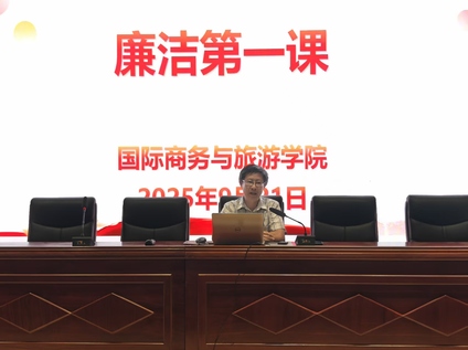 9月21日下午,國際商務與旅游學院學生黨支部在叢薈廳開展2025級新生入黨啟蒙教育暨廉潔第一課,邀請黨總支書記桂德懷主講,學生黨支部全體黨員、2025級輔導員和全體同學參加。